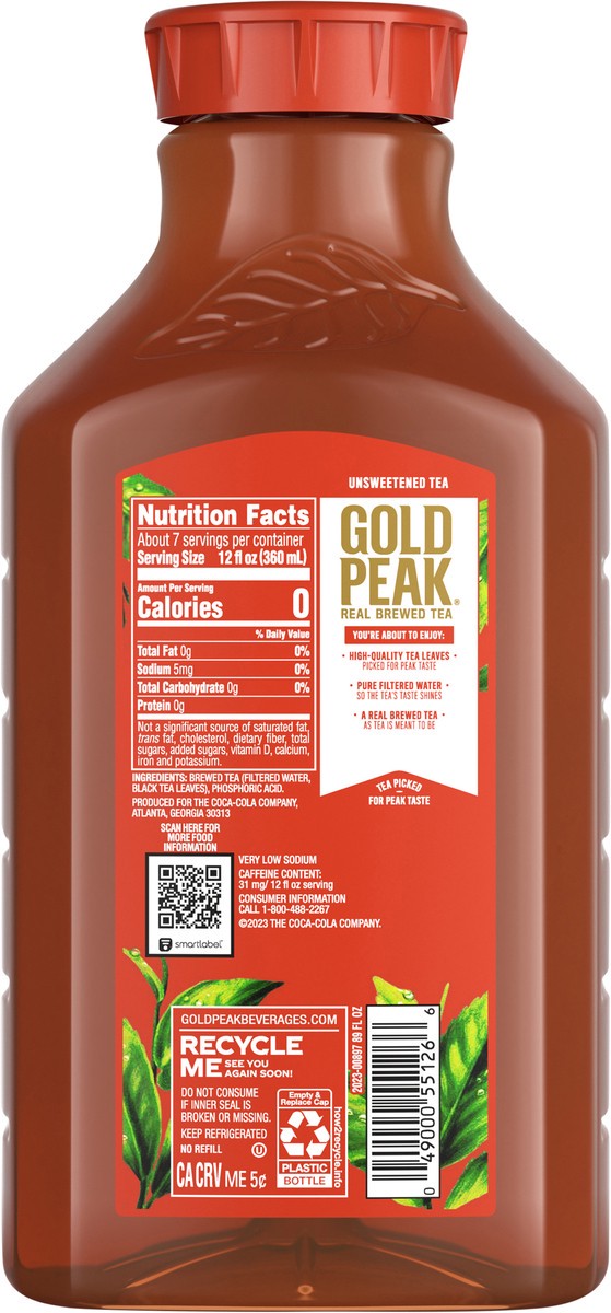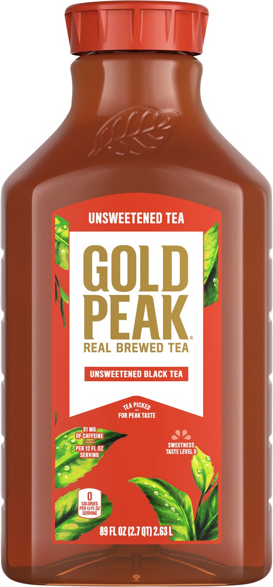 - Gold Peak Teas are real-brewed bottled tea made from tea leaves picked for peak tasteDelicious real-brewed black tea with zero sugar and zero caloriesMade with high-quality tea leaves for iced tea flavor so refreshing it tastes homemadeUnsweetened and unflavored tea to let the bold taste of tea shine through89 fl oz bottle of Gold Peak Unsweetened Tea