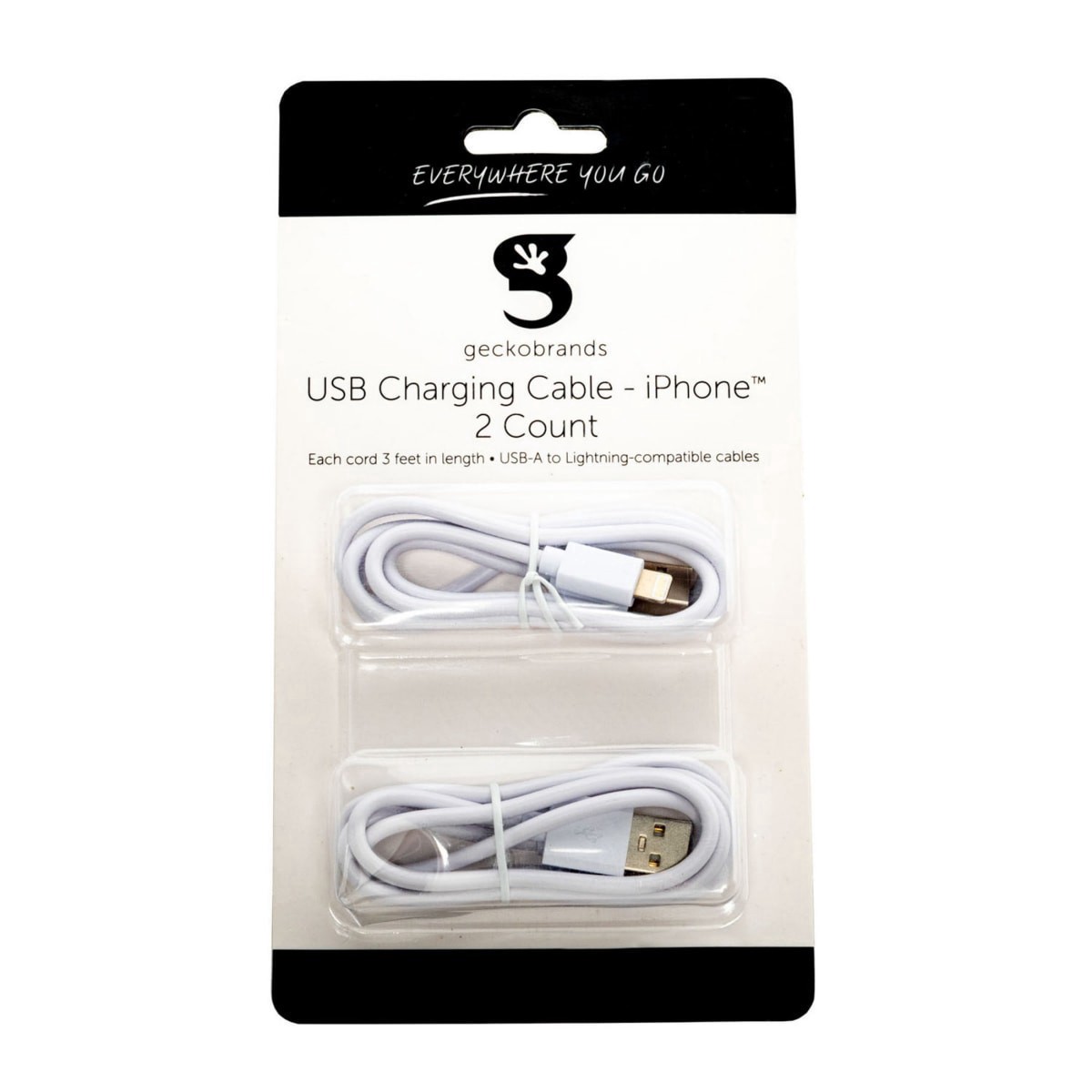 Geckobrands USB charging cables are designed with iPhones, iPads, and iPods in mind. Two cords included. Each cord measures 3 feet 1 meter in length. Lightning cable end connects to your device USB en…