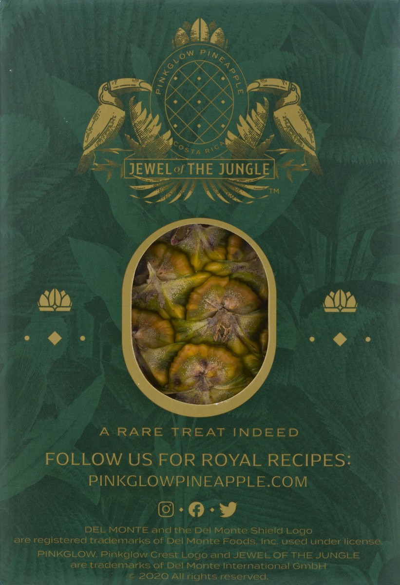 This product was made possible through bioengineering. Quality. Fresh Del Monte. Grown in Costa Rica. The jewel of the jungle. Ananas comosus. Your Treasure Has Arrived: By sea and land, Pinkglow arriā¦