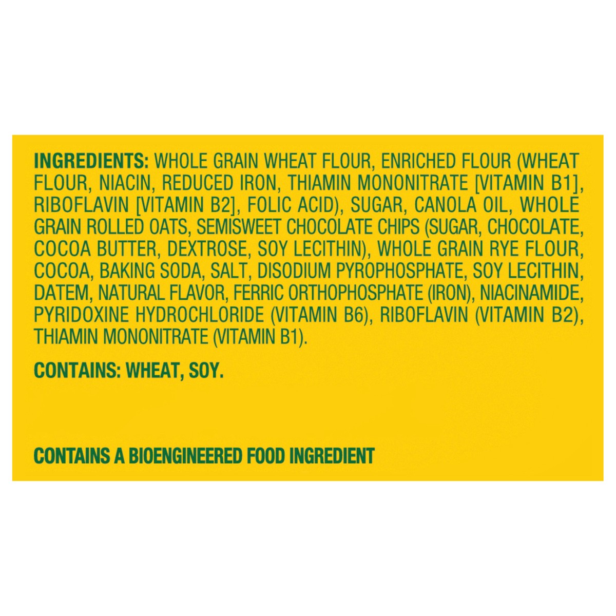 Whole Grain Wheat Flour, Enriched Flour (Wheat Flour, Niacin, Reduced Iron, Thiamin Mononitrate [Vitamin B1], Riboflavin [Vitamin B2], Folic Acid), Sugar, Canola Oil, Whole Grain Rolled Oats, Semiswee…