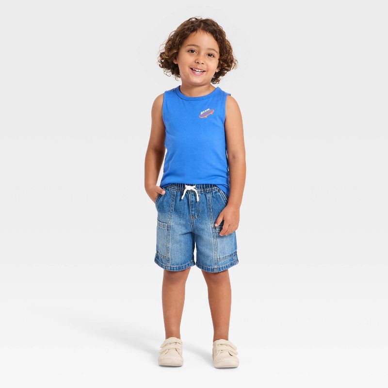 Toddler Boys' Relaxed Fit Pull On Denim Cargo Shorts - Cat & Jack™ Dark Wash 3T