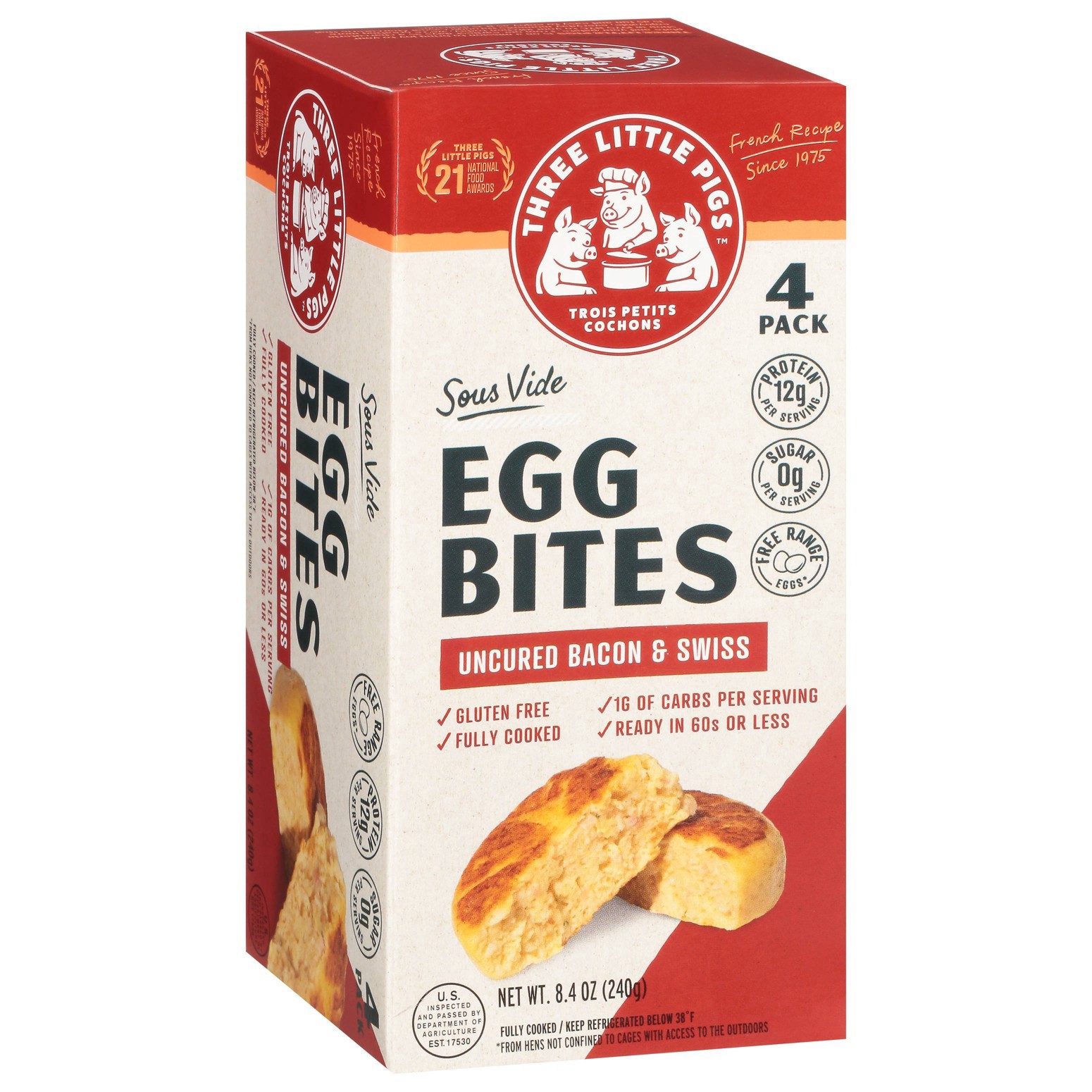 Three Little Pigs Uncured Bacon & Swiss Egg Bites - 4 ea