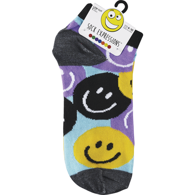 slide 1 of 1, L Low Cut Socks - Smileys - Md Htr, 1 ct