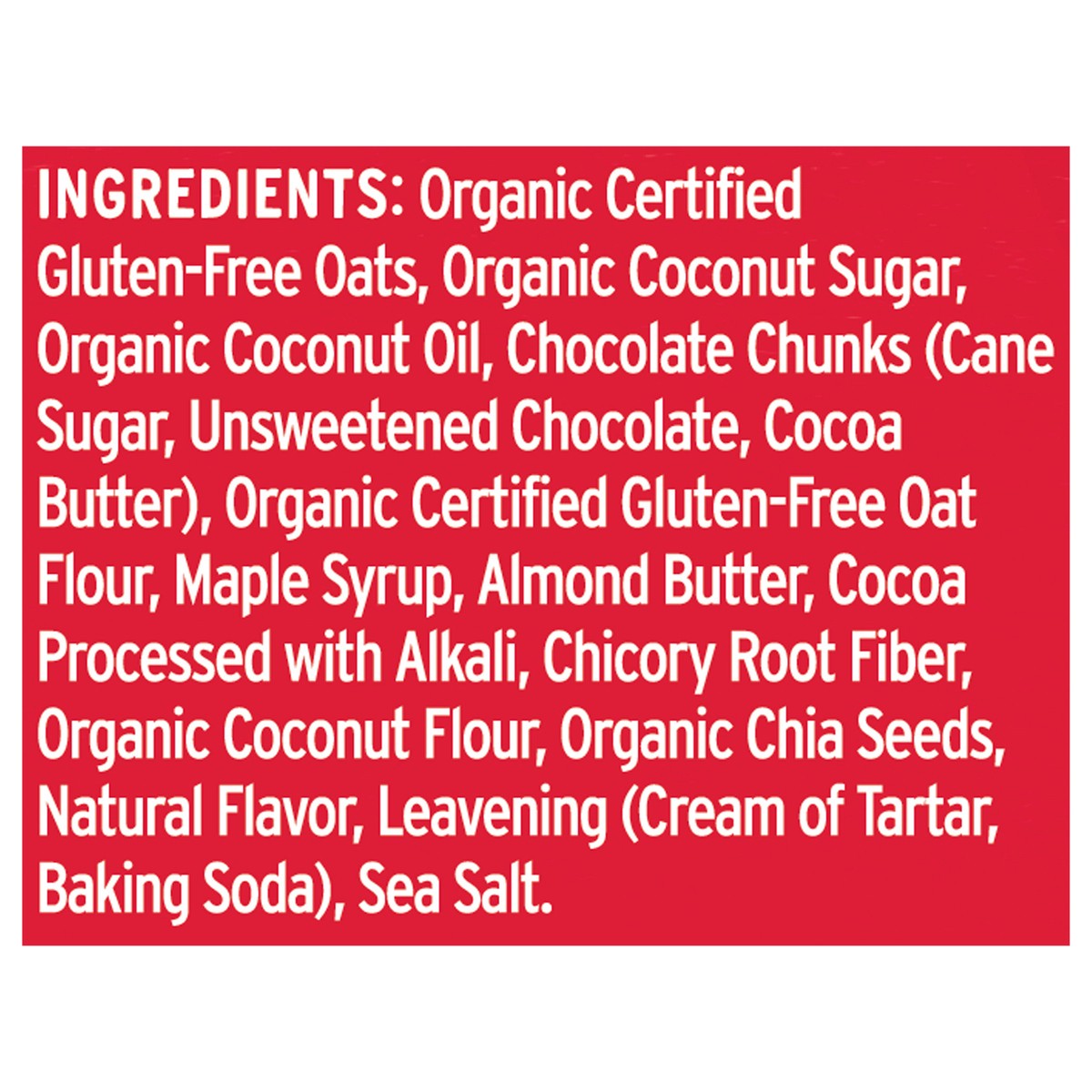 Organic Certified Gluten-Free Oats, Organic Coconut Sugar, Organic Coconut Oil, Chocolate Chunks (Cane Sugar, Unsweetened Chocolate, Cocoa Butter), Organic Certified Gluten-Free Oat Flour, Maple Syrup…
