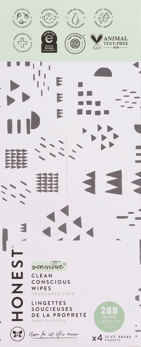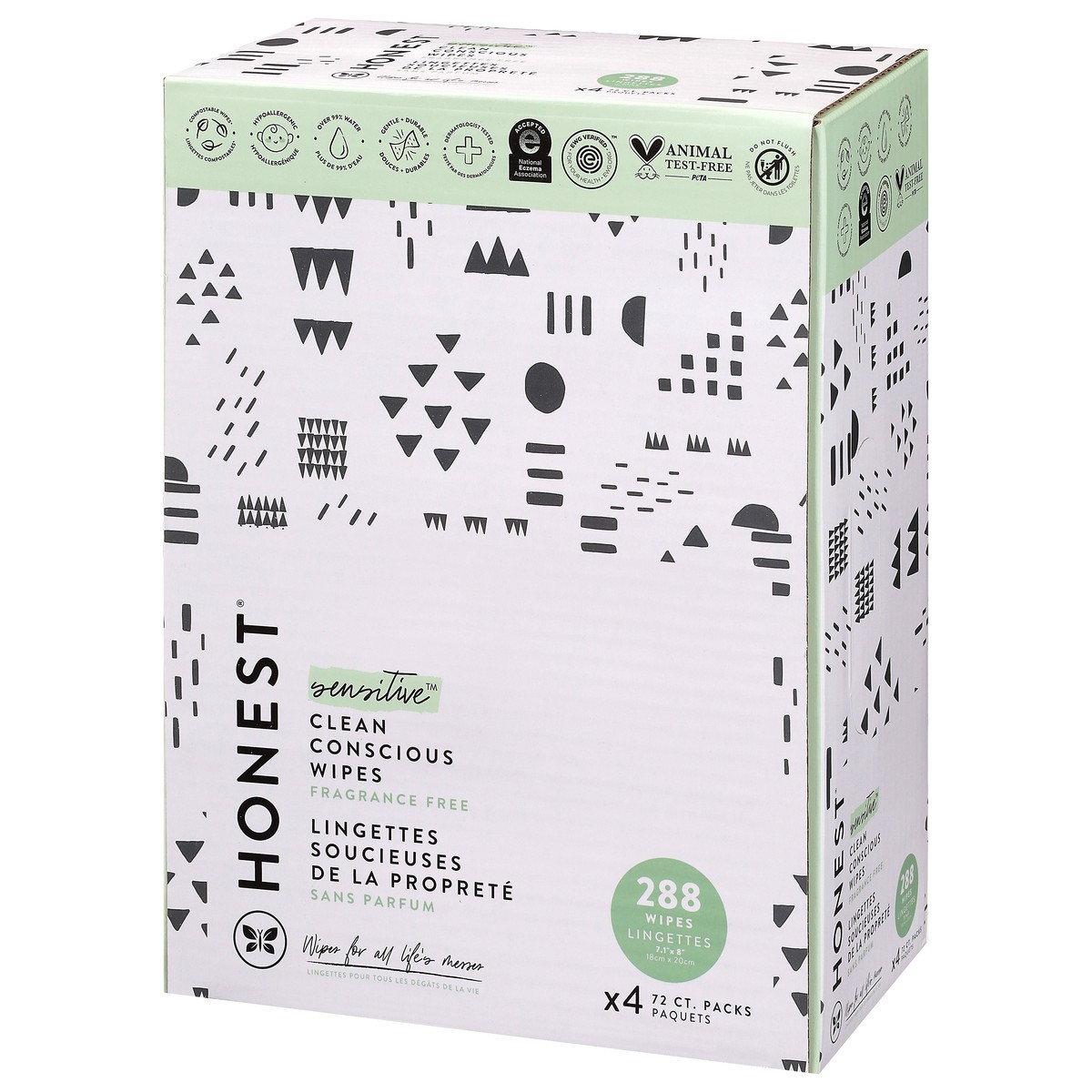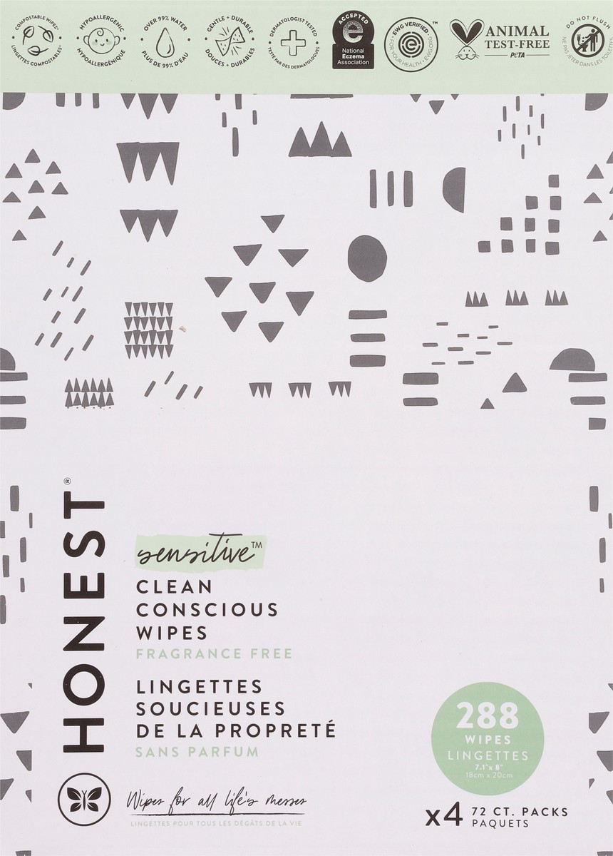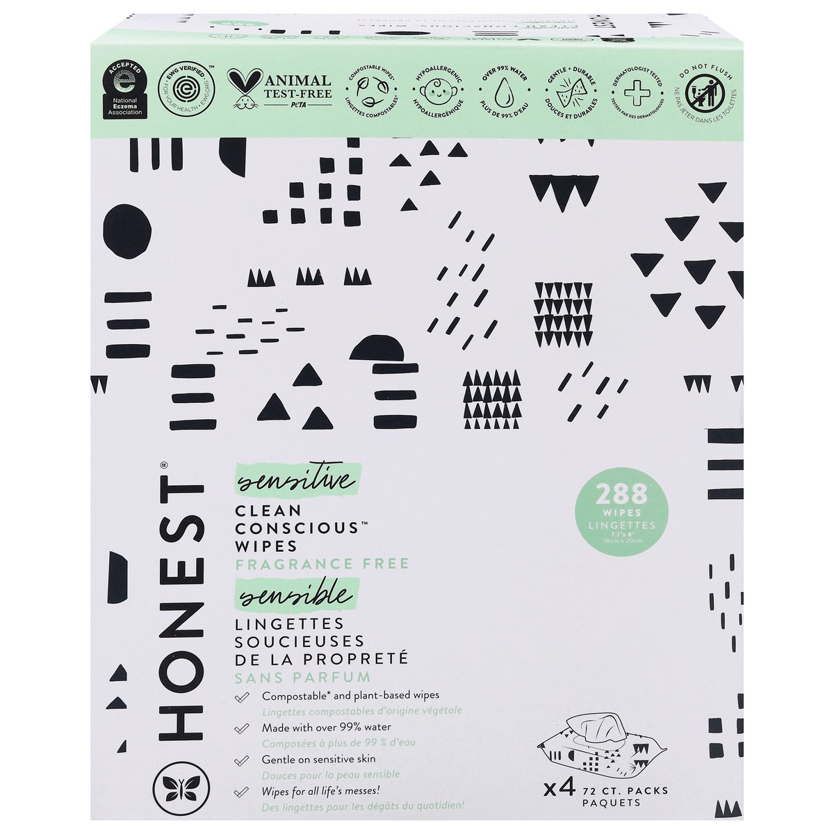 Honest Sensitive Clean Conscious Fragrance Free Wipes 4 - 72 Wipe Packs