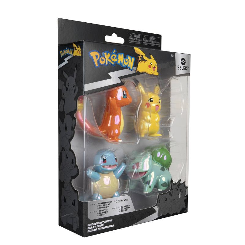 Rep the rainbow with the Pokémon Select Iridescent Shine Pack! This radiant four pack sparkles with 3-inch Battle Figures of the iconic Kanto Region First Partner Pokémon: Bulbasaur, Squirtle, Charman…