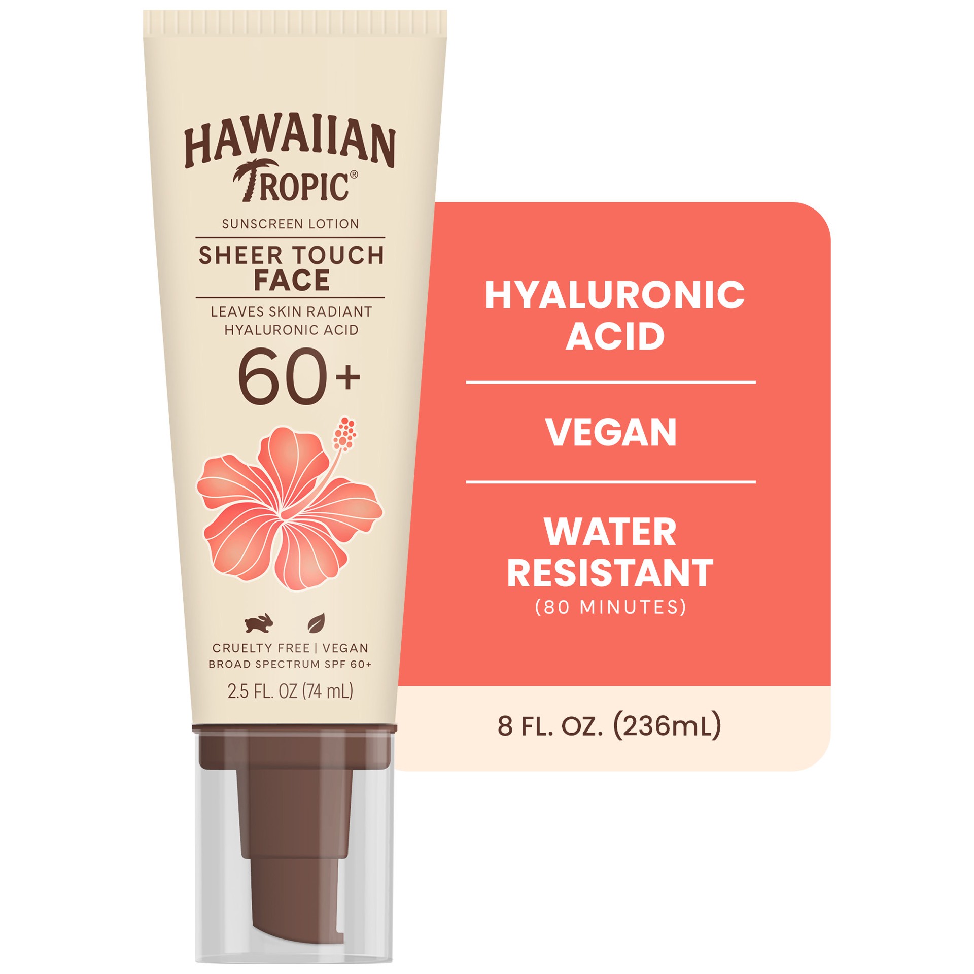 Hawaiian Tropic Sheer Touch Face SPF 60 with hydrating hyaluronic acid makes this the perfect nourishing face SPF for 12 hours of hydration. Ultra lightweight and non-greasy, this fast-absorbing, brea…
