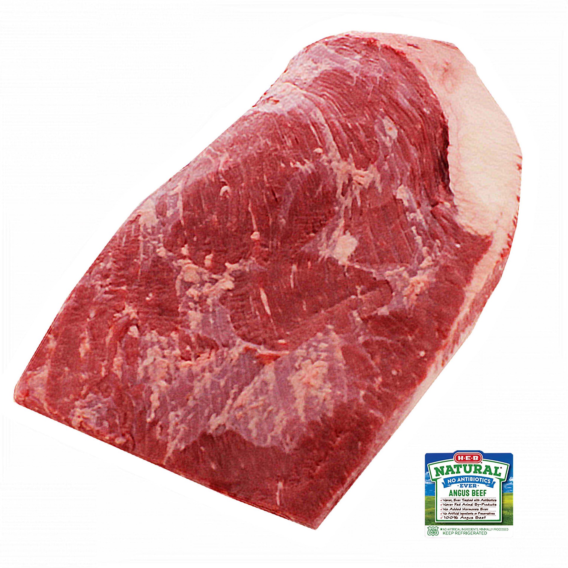 Our H-E-B Natural Angus beef brisket has superior level of fat marbling and flavor. Brisket can be slow cooked, barbecued, oven roasted and more!Always 100% Natural and no artificial ingredients or pr…