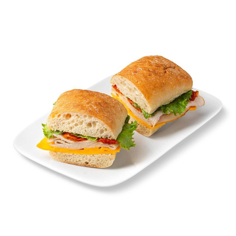 - Boar's Head turkey and cheddar cheese ciabatta sandwich