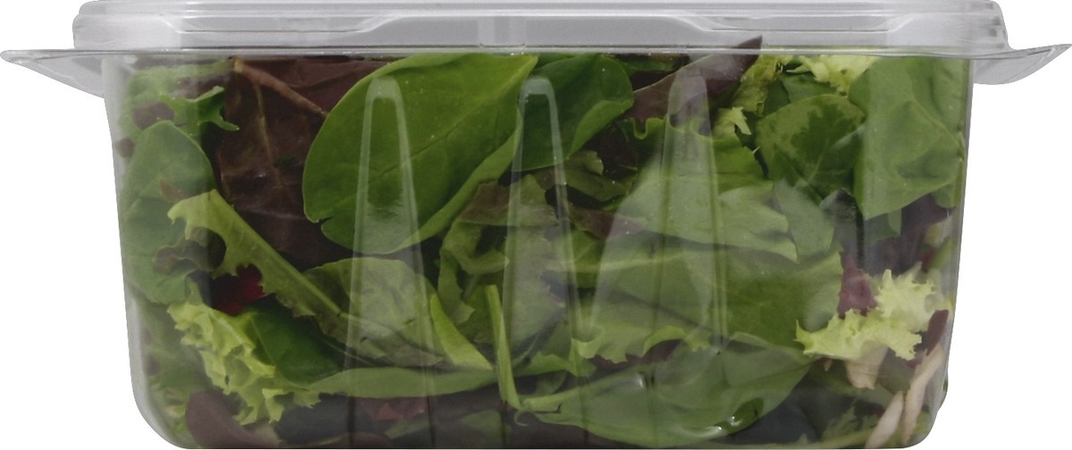 Mix of baby lettuces, greens & radicchio. No preservatives. Contains no romaine. Questions? Comments? Call 1-800-242-5472. Product of USA.
