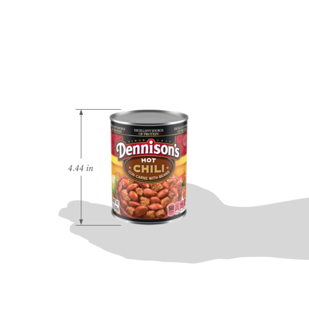 Dennison''s Hot Chili Con Carne with Beans has all the traditional taste you expect from a slow-cooking chili with an extra kick in a quick, easy-to-prepare 15 oz. can so you can feed the whole family…