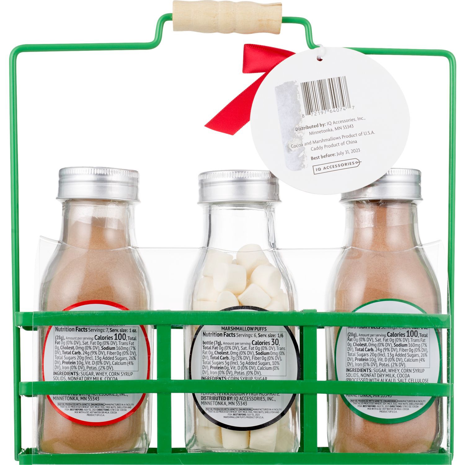 Peppermint Hot Cocoa Mix: DEXTROSE, SUGAR, NON-FAT DRY MILK, COCOA POWDER, NON-DAIRY CREAMER [SOYBEAN OIL, CORN SYRUP SOLIDS, SODIUM CASEINATE {MILK), MONO & DIGLYCERIDES, DIPOTASSIUM PHOSPHATE, SILIC…