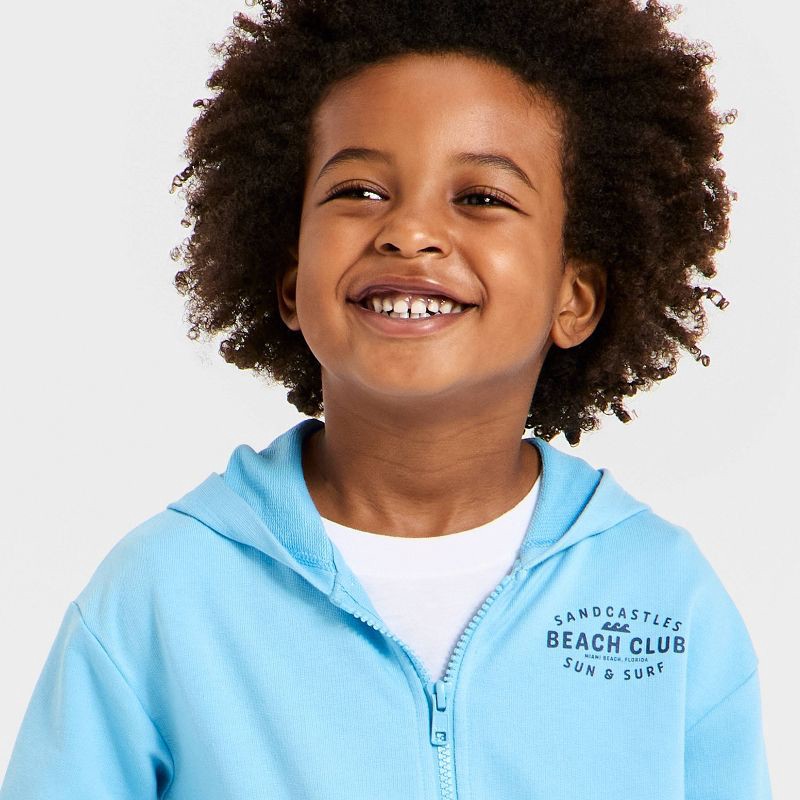 Upgrade their casualwear with this French Terry Zip-Up Hoodie from Cat & Jack™. Made of cotton-recycled polyester blend fabric for cozy comfort, this long-sleeve hoodie features "Beach Club" text on t…