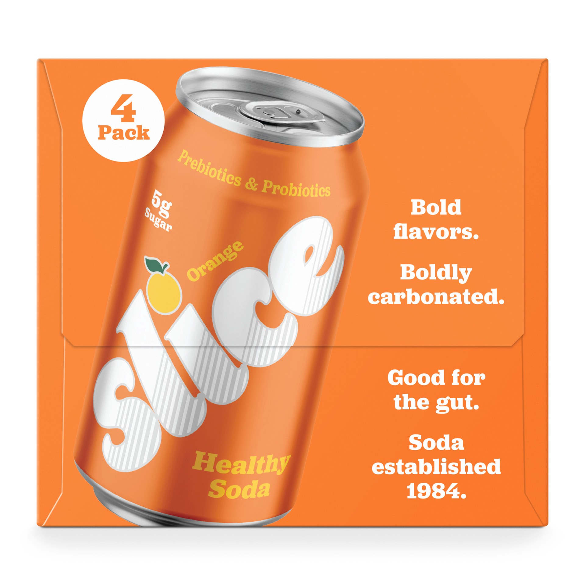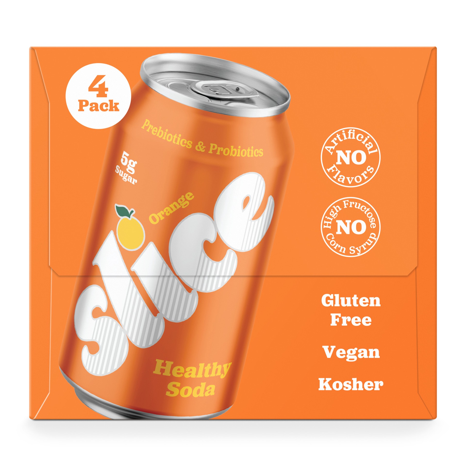 Slice is the spunky, full-flavored orange soda you loved as a kid, but now with grown-up benefits. This healthy soda contains probiotics, postbiotics and 5 grams of prebiotic fiber to support your dig…
