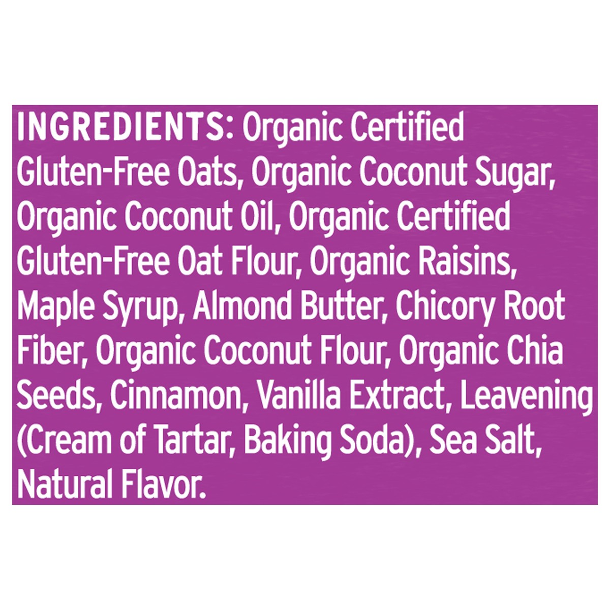 Organic Certified Gluten-Free Oats, Organic Coconut Sugar, Organic Coconut Oil, Organic Certified Gluten-Free Oat Flour, Organic Raisins, Maple Syrup, Almond Butter, Chicory Root Fiber, Organic Coconu…