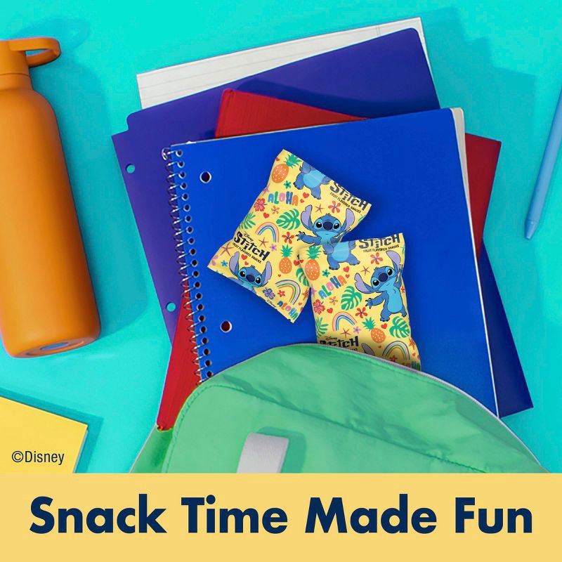 - CONTAINS: One 8 oz cardboard box of chewy Disney Stitch Fruit Flavored Snacks; 10 pouches