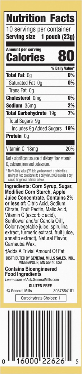 Corn Syrup, Sugar, Modified Corn Starch, Apple Juice Concentrate, Contains 2% or Less of: Citric Acid, Sodium Citrate, Fruit Pectin, Malic Acid, Vitamin C (Ascorbic Acid), Sunflower and/or Canola Oil†…