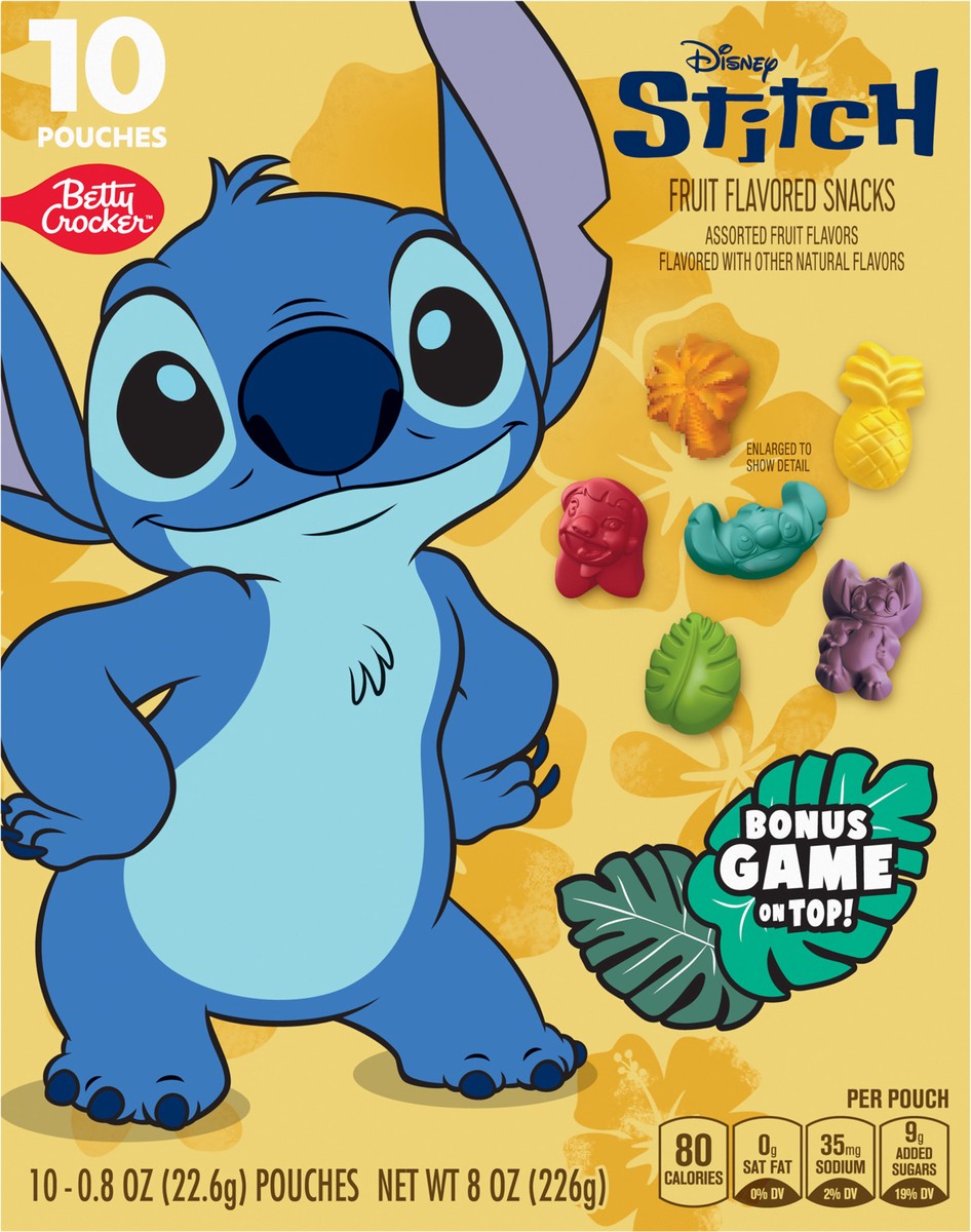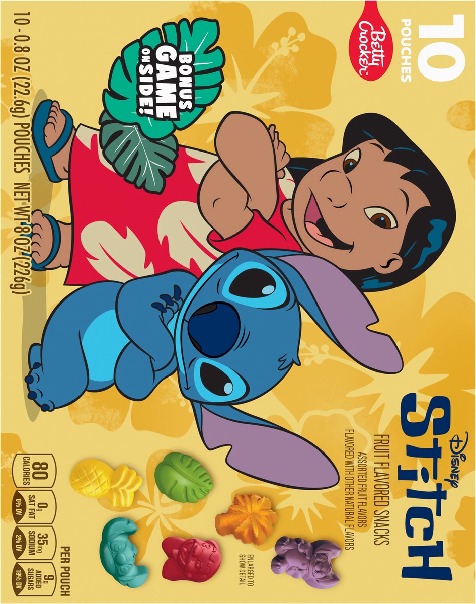 Betty Crocker Disney Stitch Fruit Flavored Snacks, Fat Free and Gluten Free Snack, 8 oz (10 Pouches)