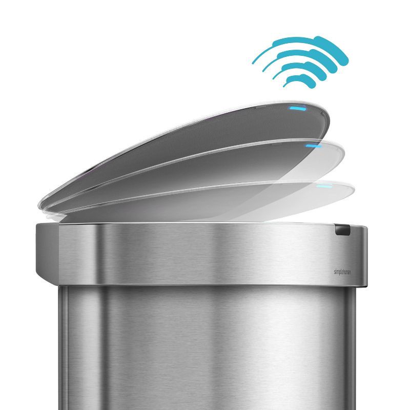 simplehuman 45L Semi-Round Liner Rim Motion Sensor Kitchen Trash Can Stainless Steel: Touchless Indoor Garbage Can