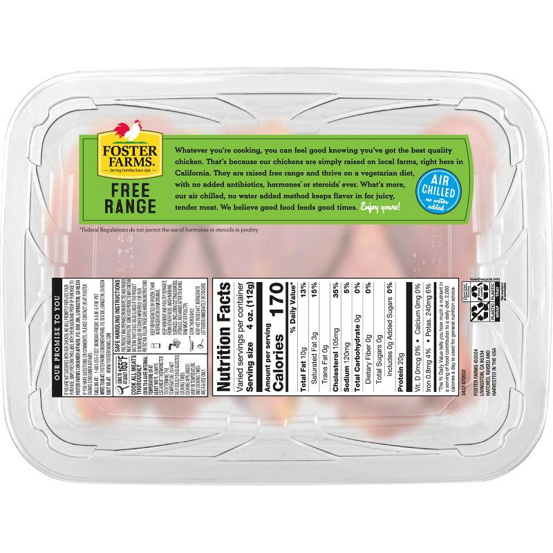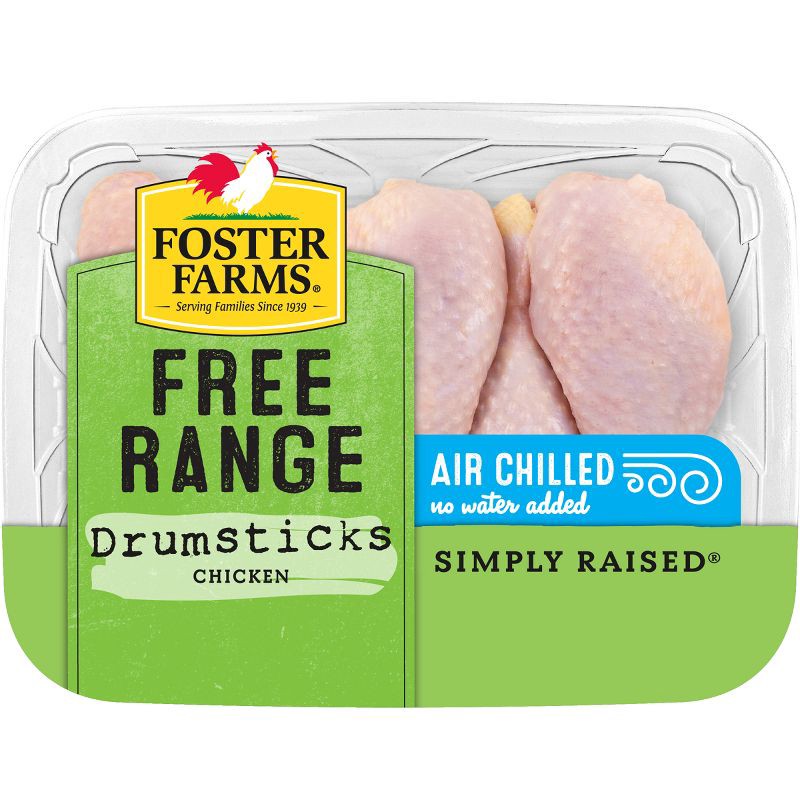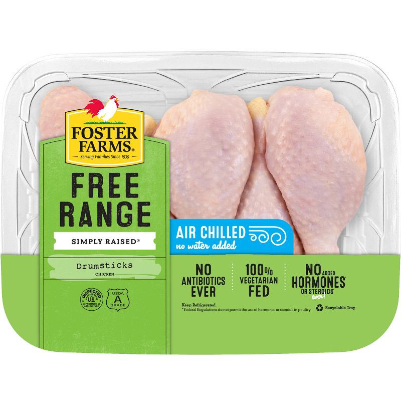 Foster Farms Foster Farms Free Range Simply Raised Chicken Drumsticks. Serving families since 1939. Free range, air chilled. No water added. No antibiotics ever. 100% vegetarian fed. No added hormones…