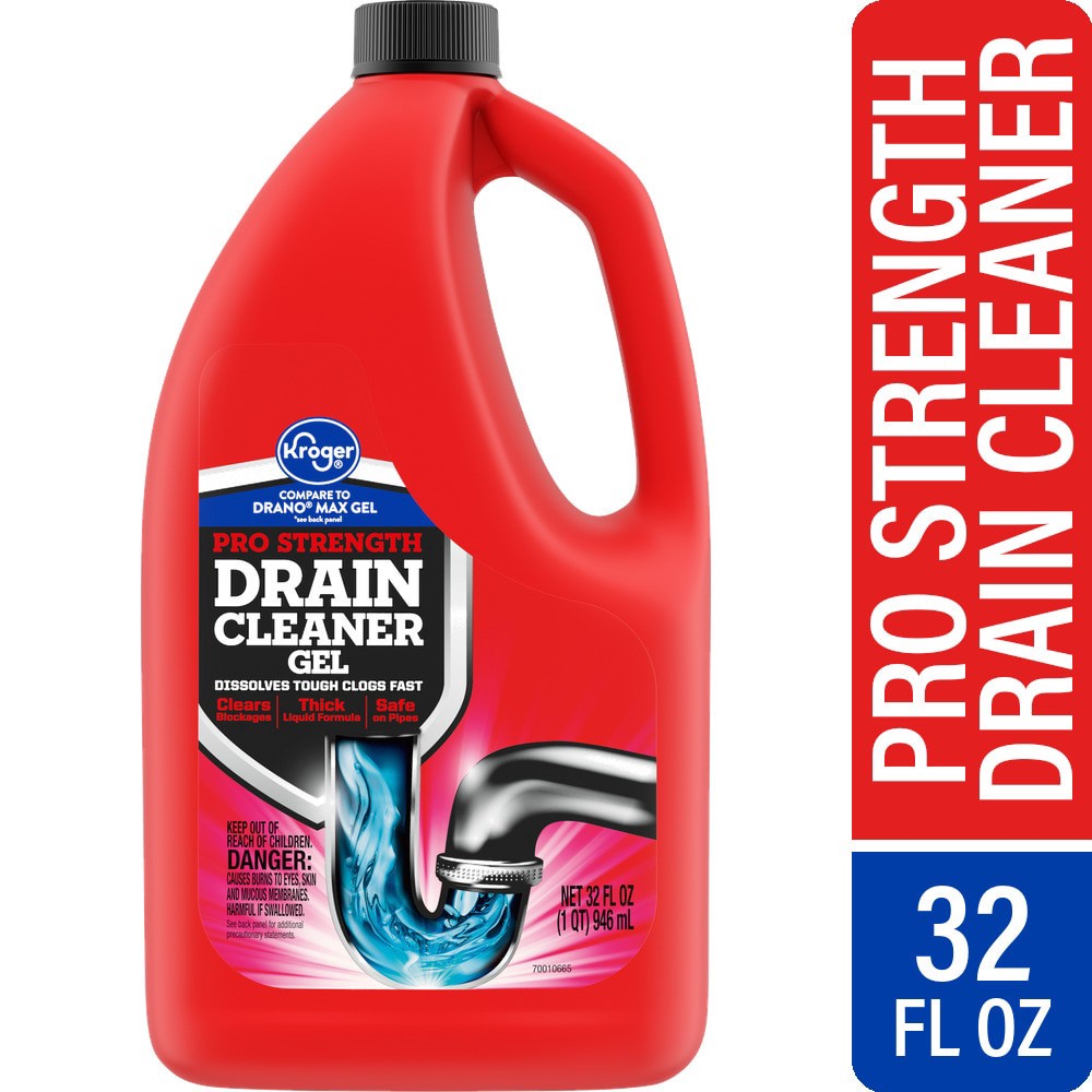 Kroger® Pro Strength Drain Cleaner Gel dissolves tough clogs fast with its thick liquid formula. Perfect for clearing blockages and helping with slow-running drains in your bathroom, kitchen sinks, ba…
