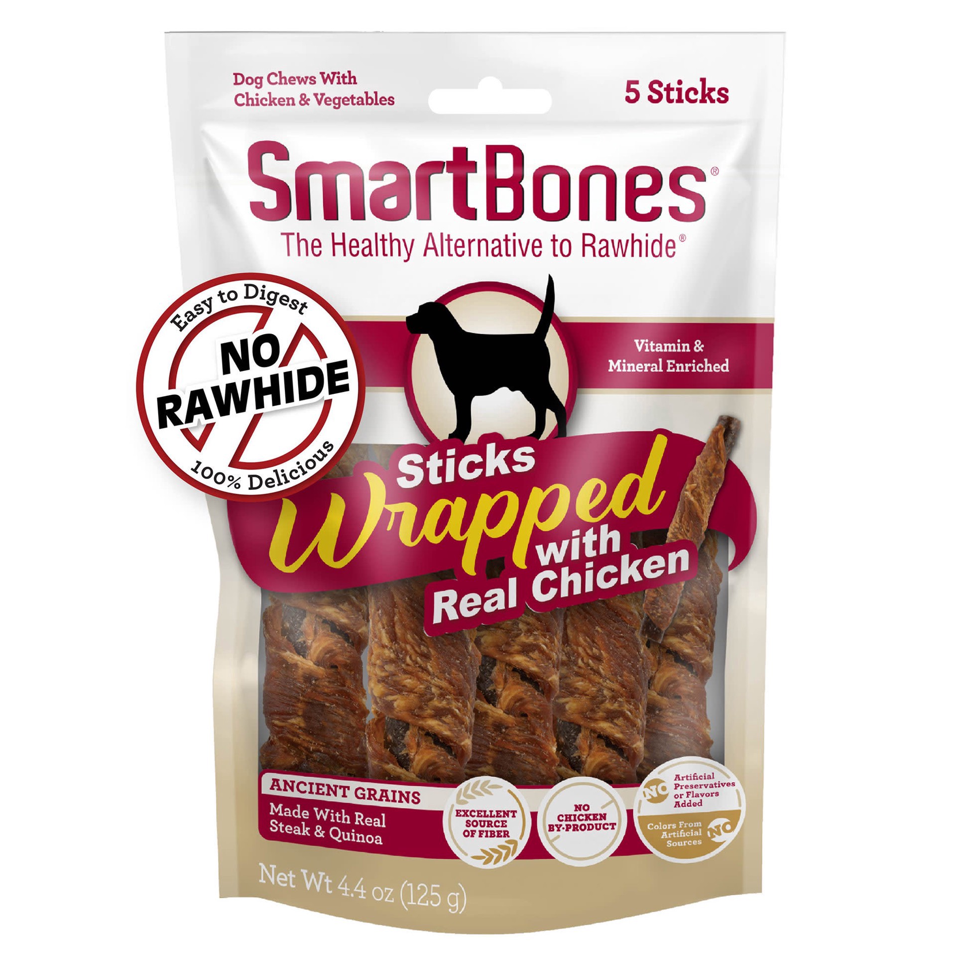 SmartBones Sticks Wrapped With Real Chicken are made with real, premium chicken, steak and quinoa for a scrumptious taste your dog can't resist! These rawhide-free chews are an excellent source of fib…
