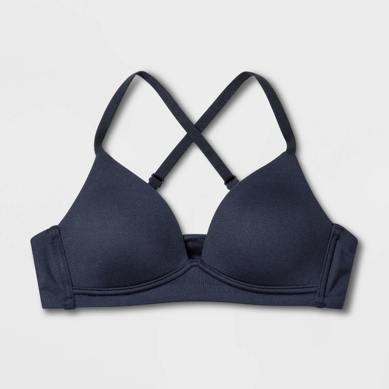 Maidenform Self Expressions Girls' Molded Triangle Pullover Comfort Bra - Blue 34A: Adjustable Straps, Crisscross Back