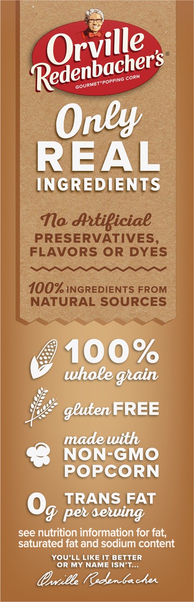 Only real ingredients. Class bags. 100% Ingredients from natural sources. 100% Whole grain. You'll like it better or my name isn't Orville Redenbacher.
