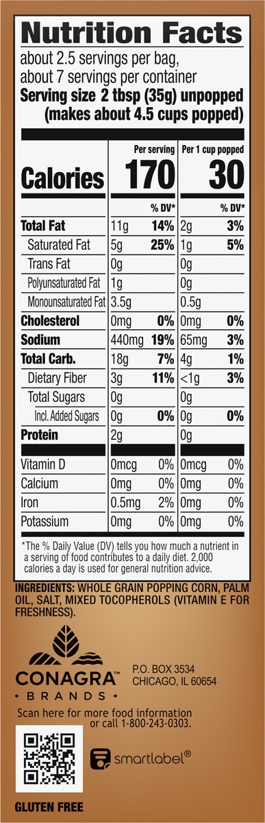 Whole Grain Popping Corn, Palm Oil, Salt, Rosemary Extract (for Freshness).