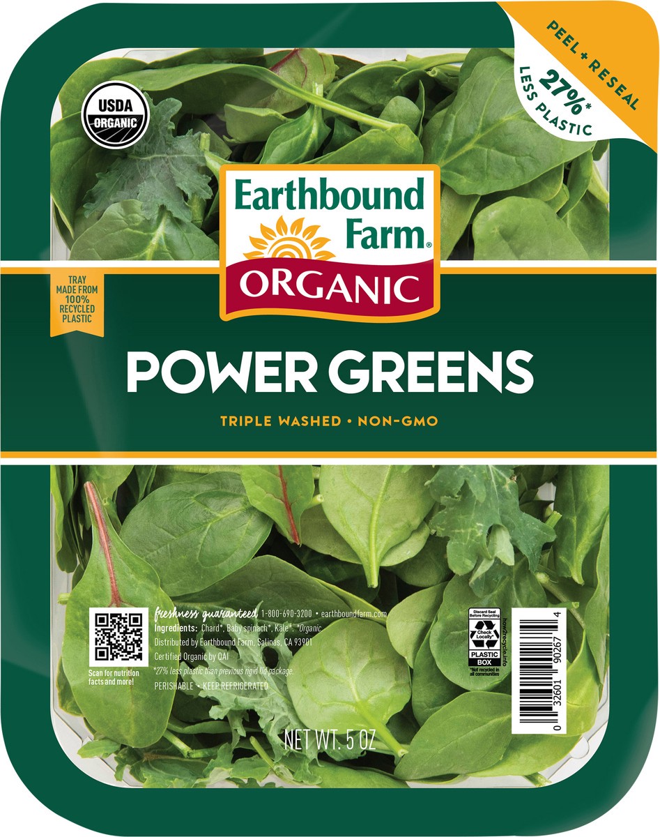 Earthbound Farm’s Organic Power Greens is a powerhouse of nutrition and flavor, featuring a super-versatile mix of tender baby spinach, baby red and green chards, and baby kale. Whether you're whippin…