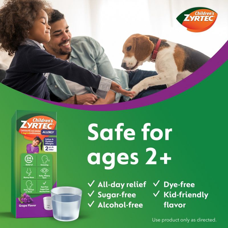 Children's Zyrtec 24 Hour Allergy Relief Syrup - Grape - Cetirizine - 8 fl oz: Dye-Free, Sugar-Free, Contains Antihistamine