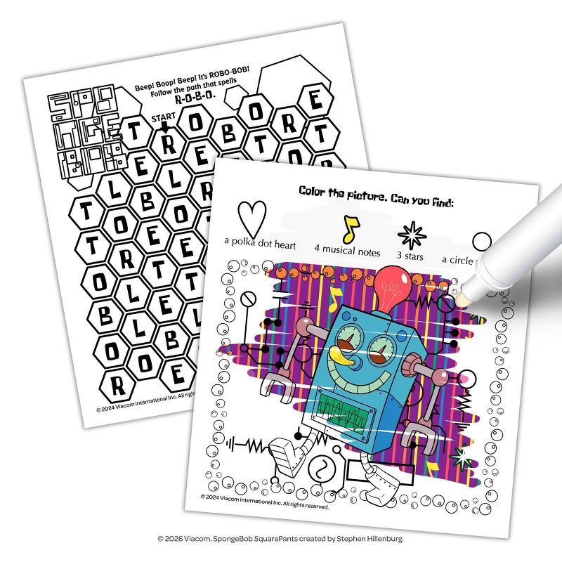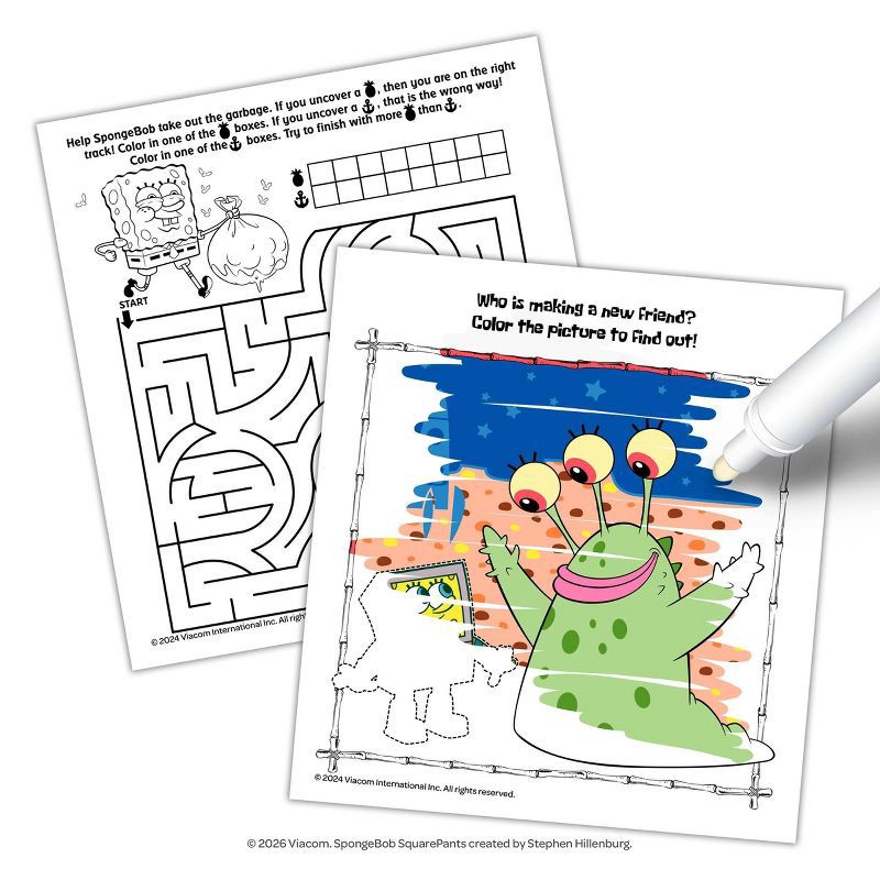 - Mess-free coloring, games, and activities featuring favorite SpongeBob SquarePants characters in a portable size that's great for travel.