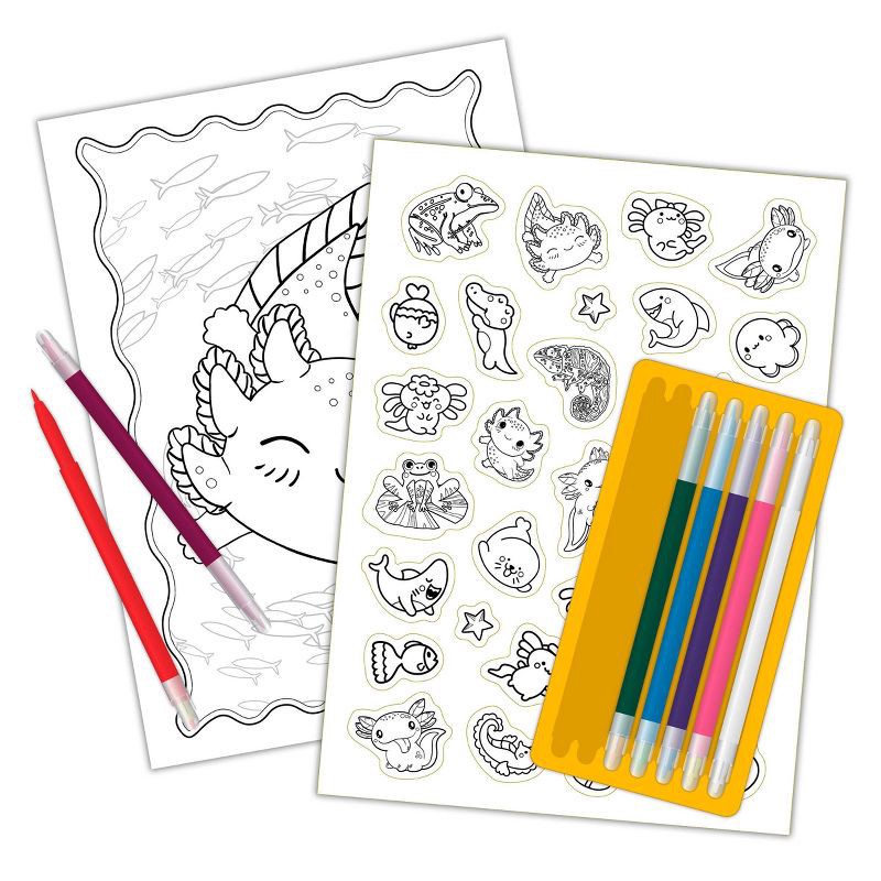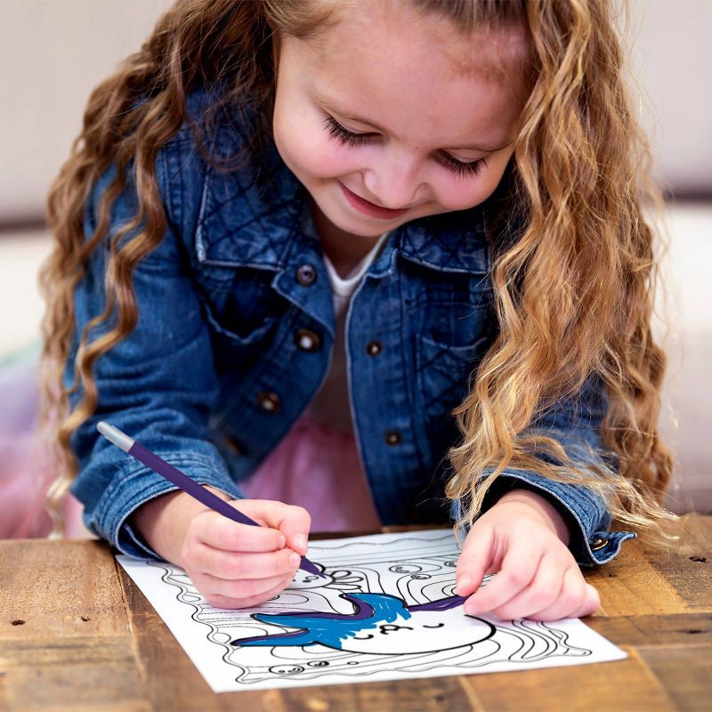 - Includes coloring and activity pages, color-your-own sticker sheet, and 7 color changing markers