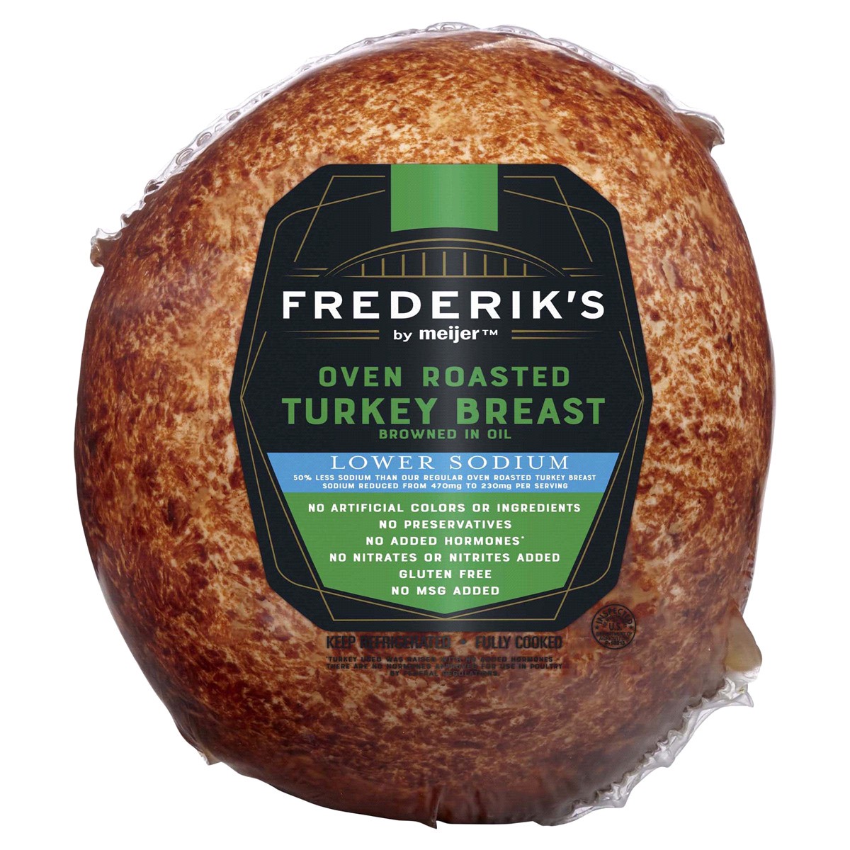 Satisfy your cravings with Frederik's by Meijer Lower Sodium Oven Roasted Turkey Breast. From snacking to savoring, every slice is tasty, tender and full of fantastic flavor.