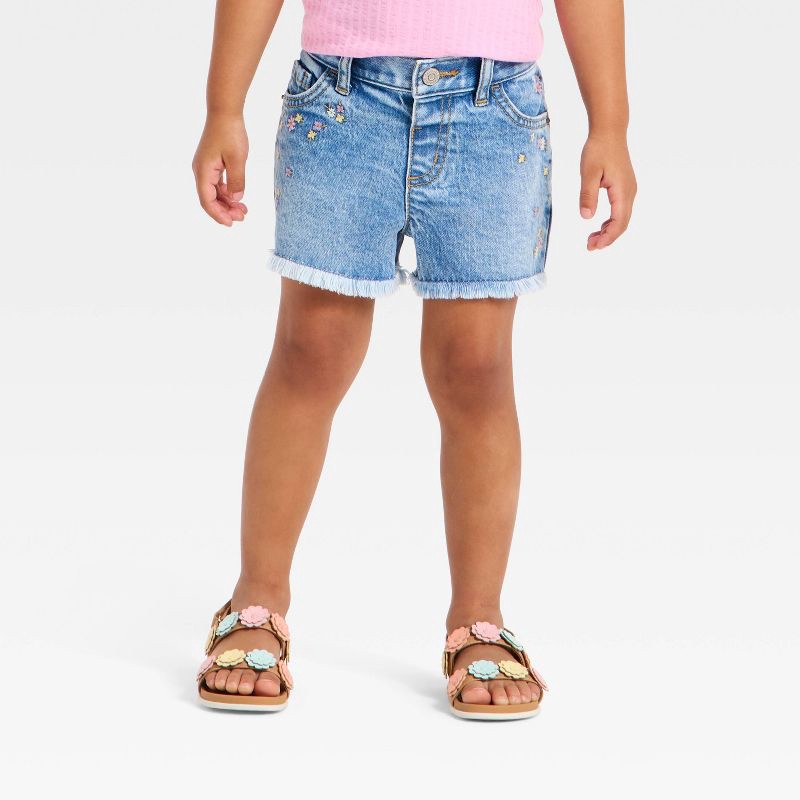 Your toddler will look and feel their adorable best in these Floral Embroidered Denim Cutoff Shorts from Cat & Jack™. Made of cotton-spandex blend fabric with recycled polyester-cotton blend lining, t…