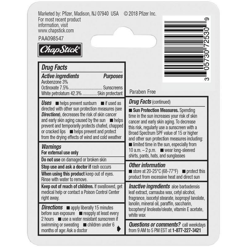 - Unflavored Original ChapStick Moisturizer lip balm is familiar and comforting