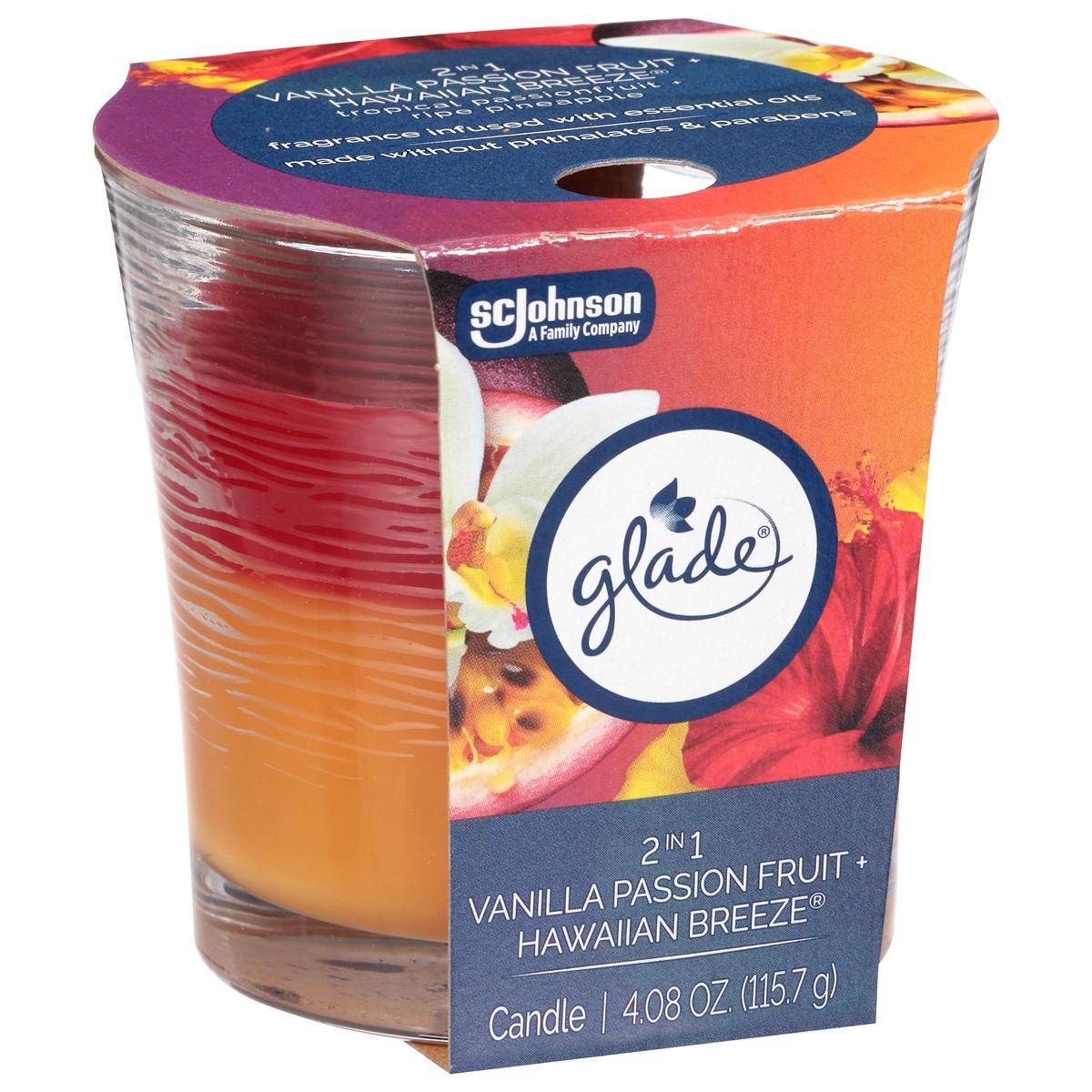 Glade 2 in 1 Vanilla Passion Fruit + Hawaiian Breeze Candle 4.08 oz