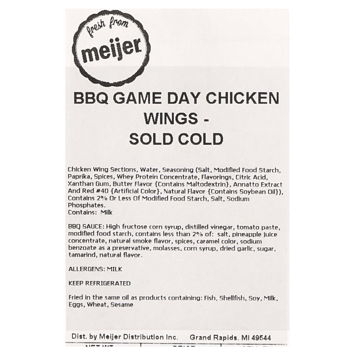 Fresh From Meijer Bbq Game Day Chicken Wings, Sold Cold