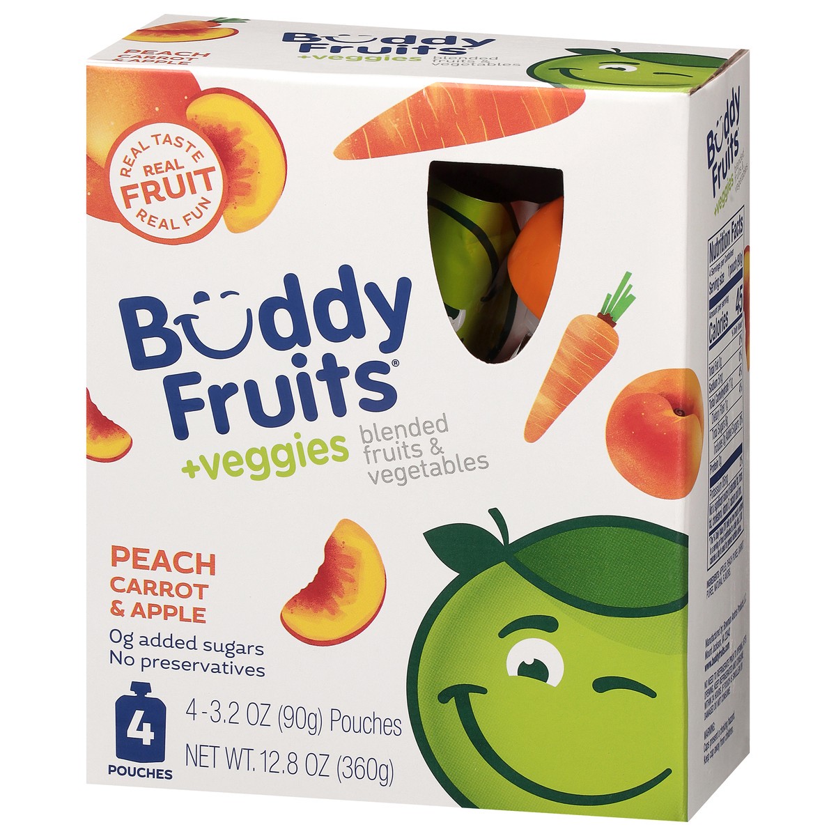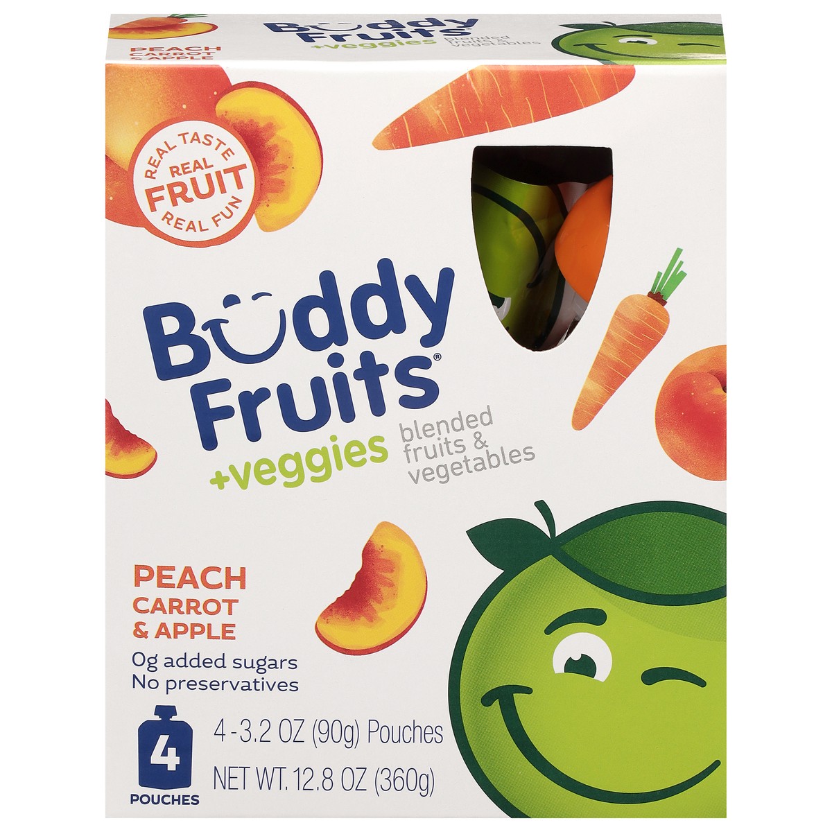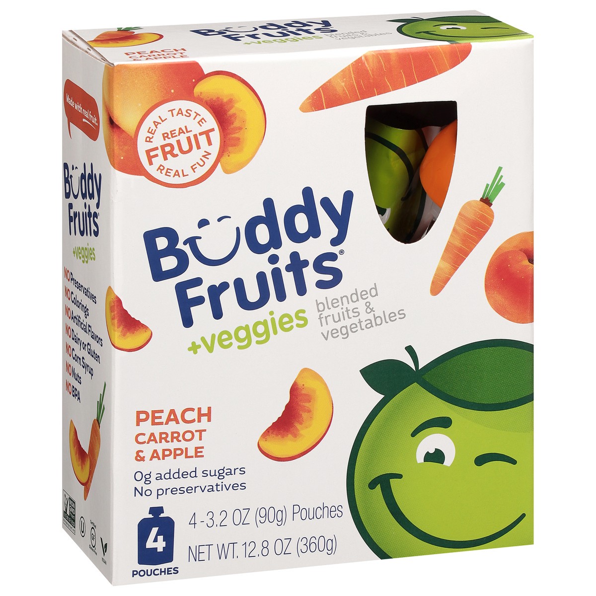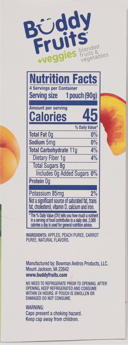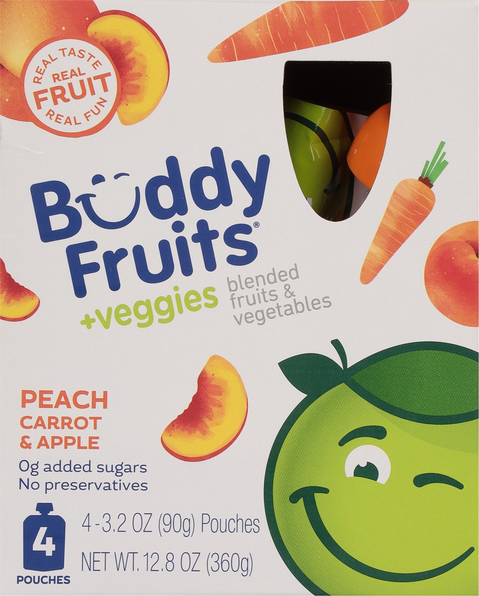 Buddy Fruits +Veggies Peach Carrot & Apple Blended Fruits & Vegetables 4 - 3.2 oz Pouches