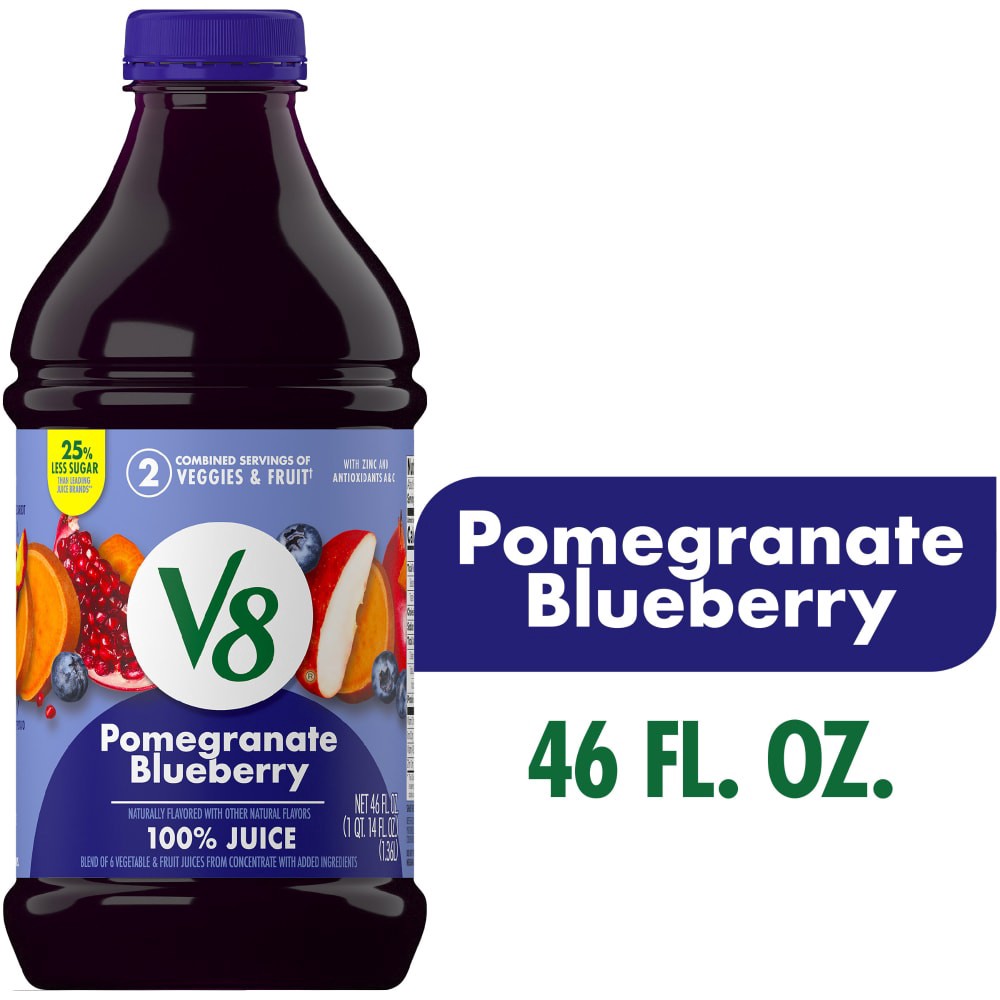 - One (1) 46 fl oz bottle of V8 Pomegranate Blueberry 100% Fruit and Vegetable Juice