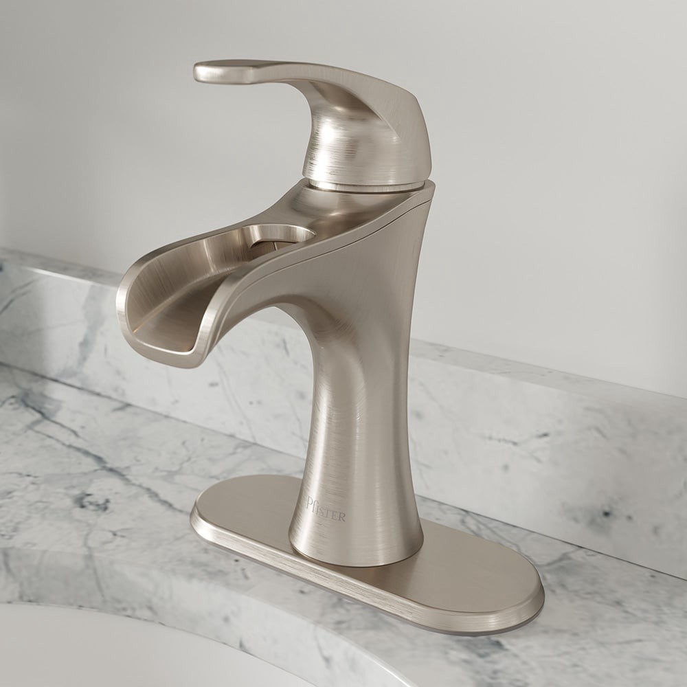 Pfister Jaida Brushed Nickel Single hole 1-handle WaterSense Low-arc Residential Handle Bathroom Sink Faucet with Drain with Deck Plate