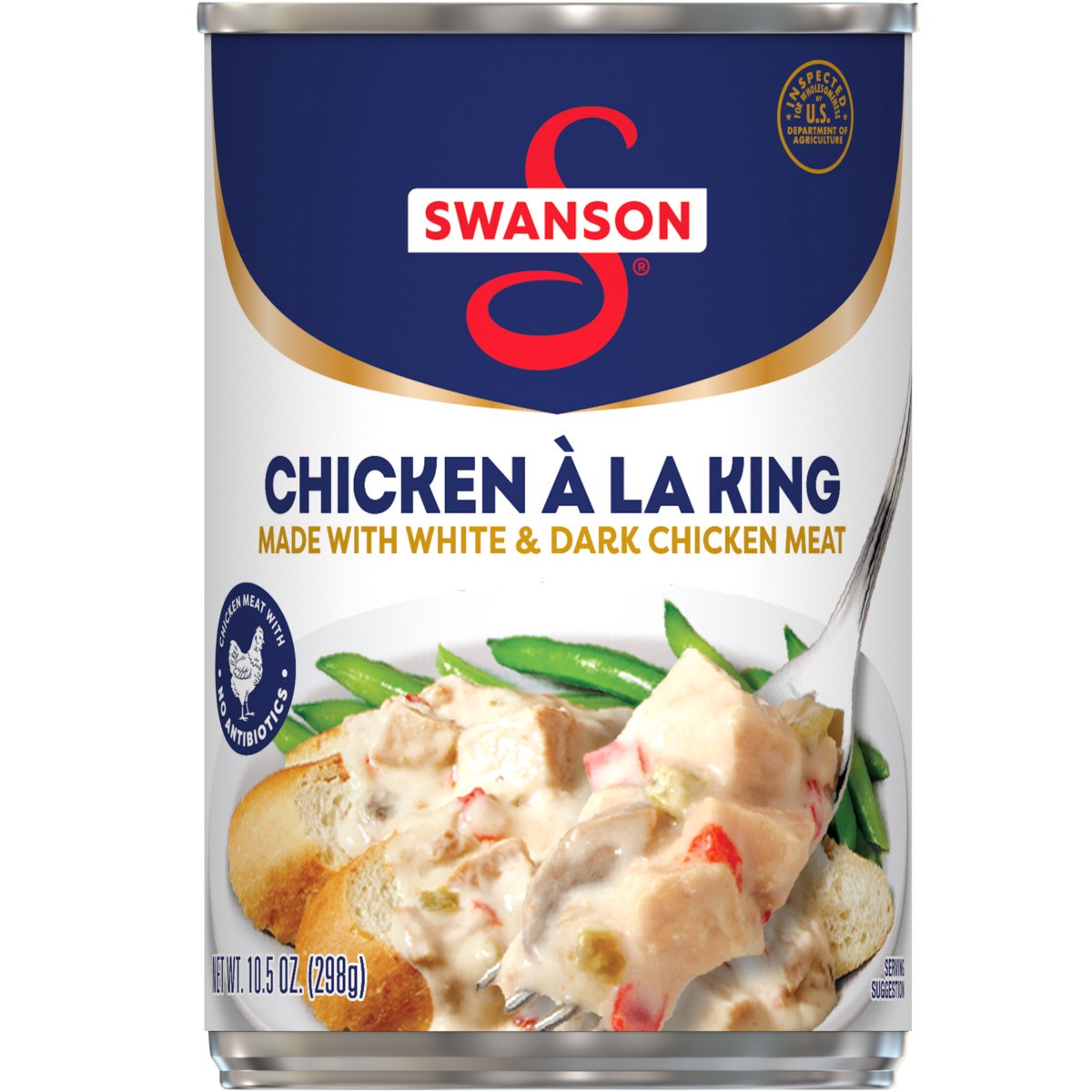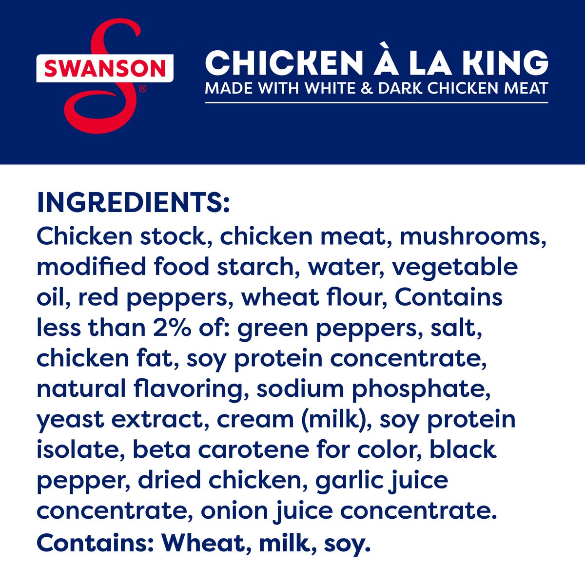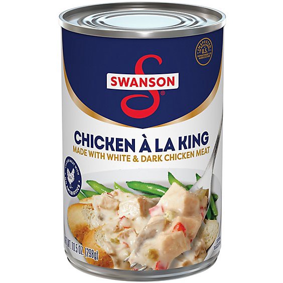 Enjoy the warm and hearty flavor of Swanson Canned Chicken a la King With White and Dark Chicken Meat. Swanson Chicken a la King is a convenient take on a classic comfort food, featuring tender chicke…