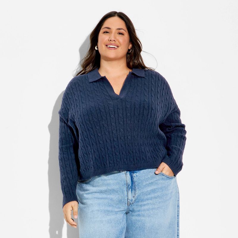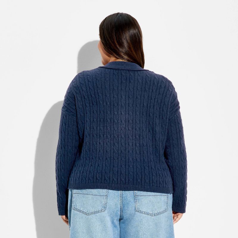 Women's Polo Collar Pullover Sweater - Wild Fable™ Navy Blue XXL