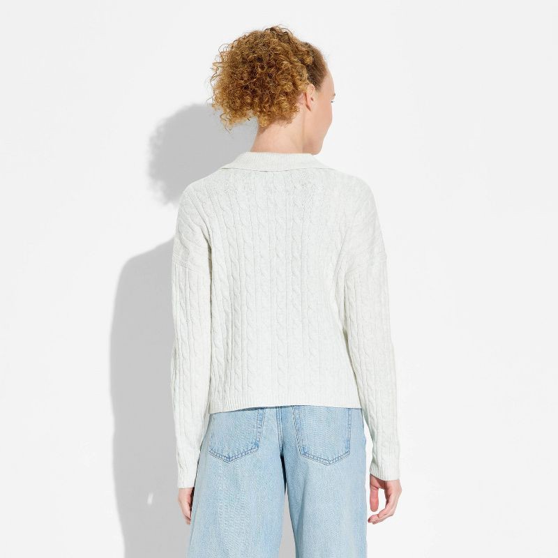 Women's Polo Collar Pullover Sweater - Wild Fable™ Heather Gray L