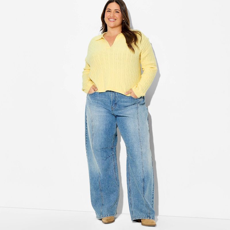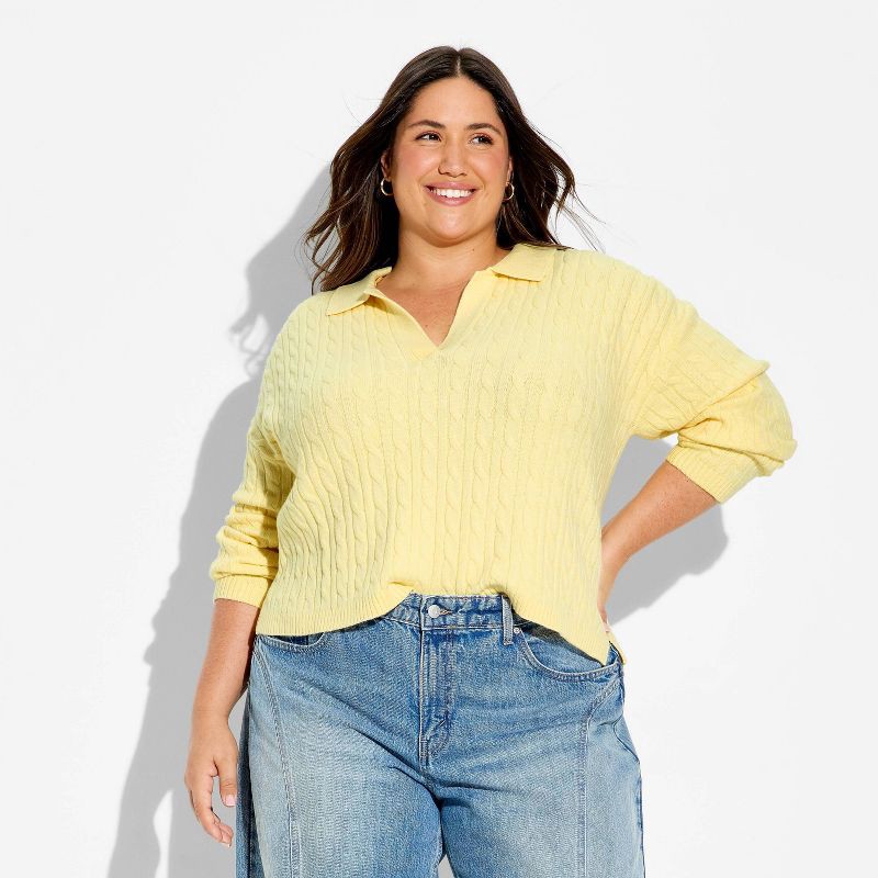 Women's Polo Collar Pullover Sweater - Wild Fable™ Yellow XXL