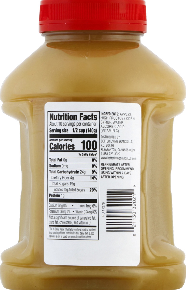 Per 1/2 Cup: 100 calories; 0 g sat fat (0% DV); 0 mg sodium (0% DV); 19 g total sugars. Quality guaranteed. www.betterlivingbrandsLLC.com. SmartLabel: Scan for more food information.
