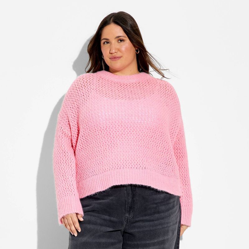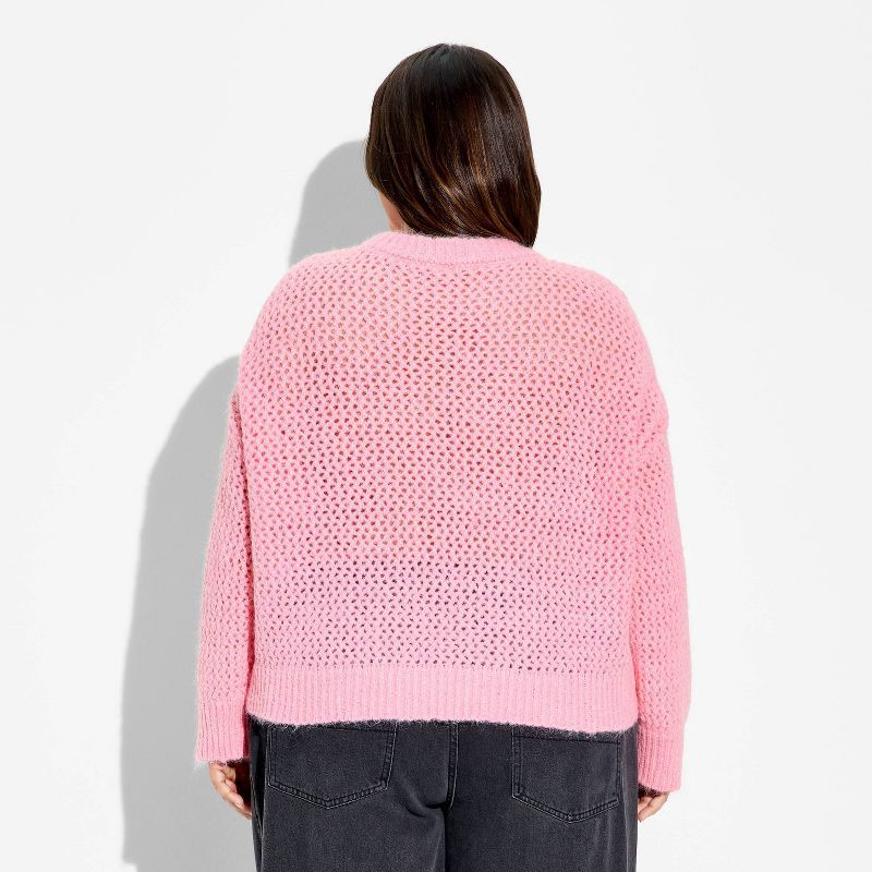 Women's Openwork Crewneck Pullover Sweater - Wild Fable™ Pink XXL