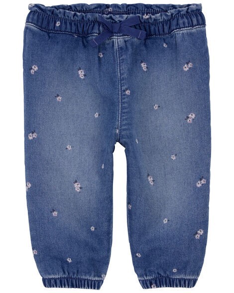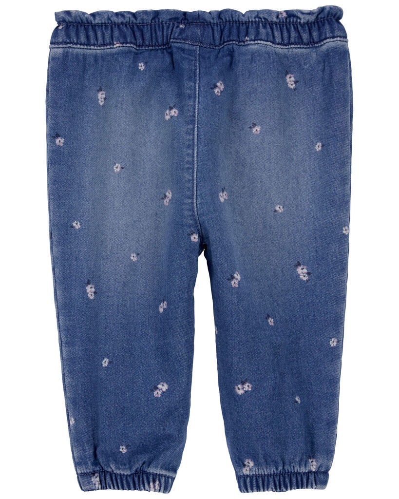 Oshkosh Baby Floral Print Knit-Like Denim Joggers Medium Wash 3M