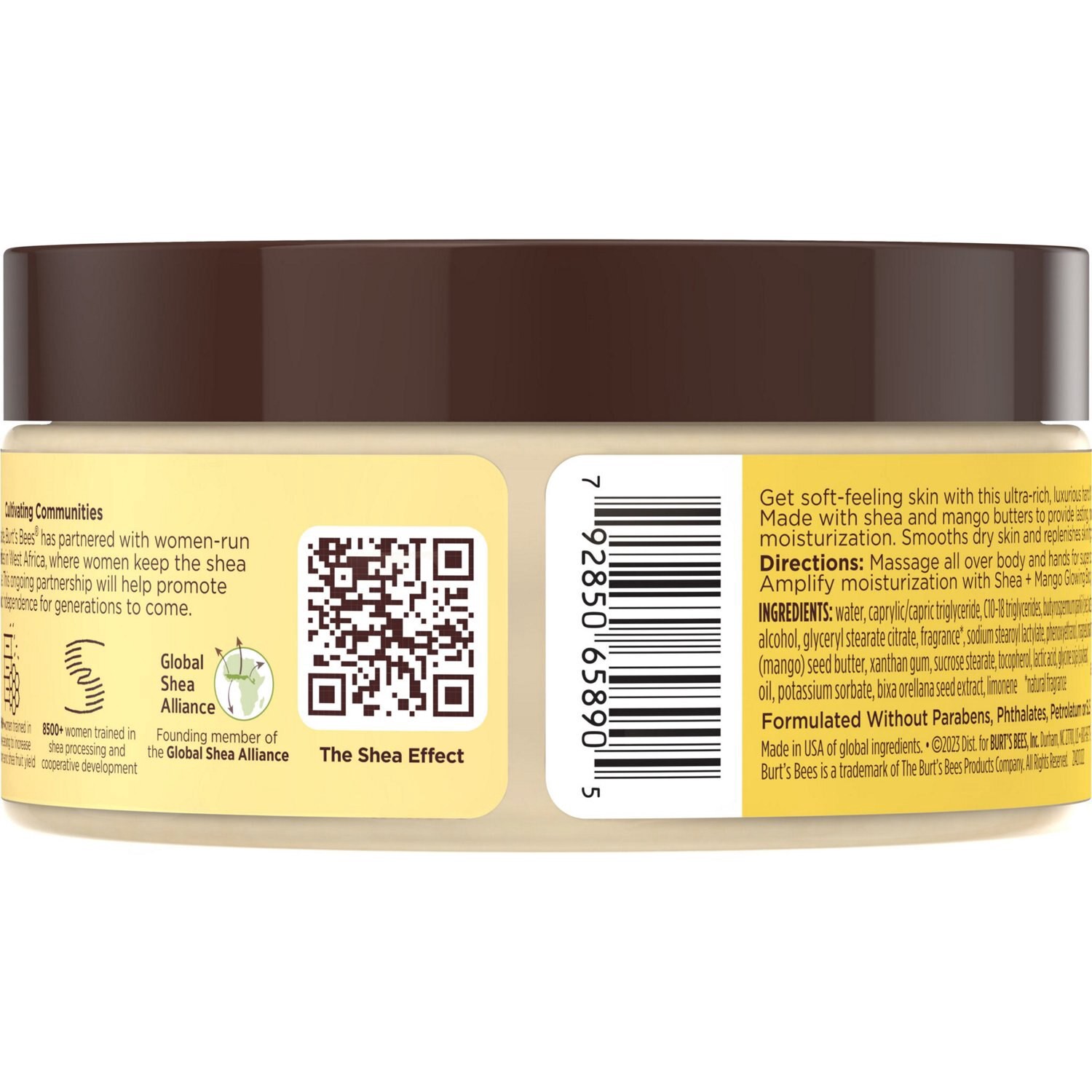 Burt's Bees Shea + Mango Luxurious Hand Butter and Body Butter, Natural Origin Skin Care, 1 Tub, 6.5 oz.