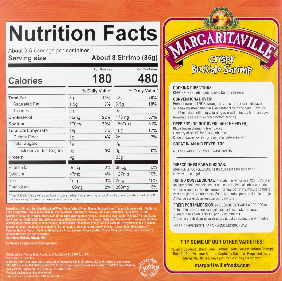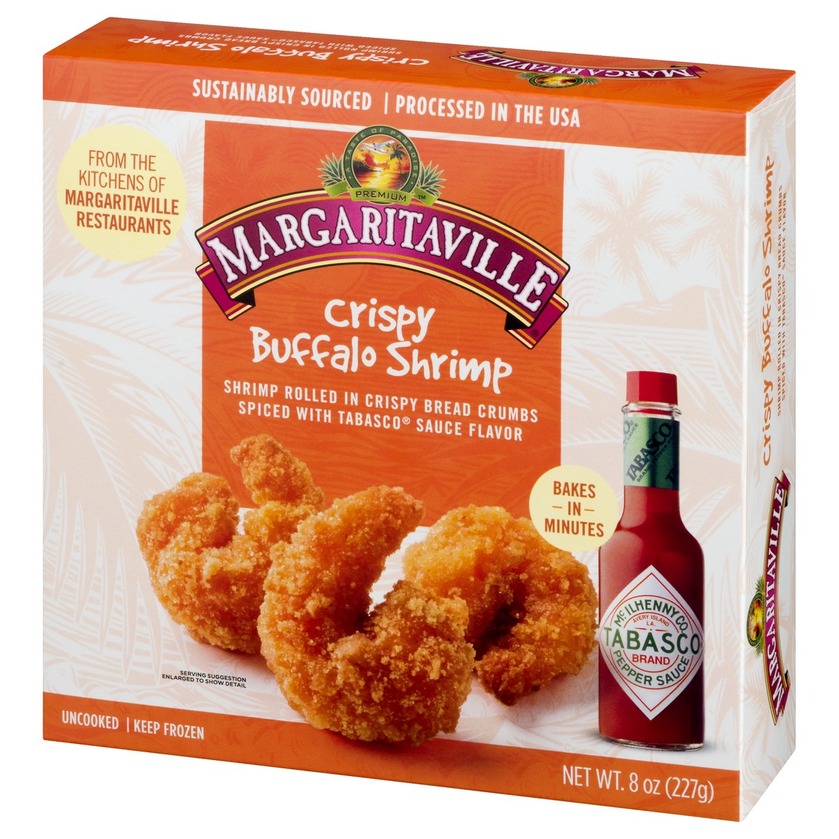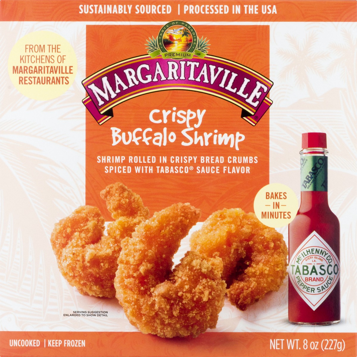 Shrimp rolled in crispy bread crumbs spiced with Tabasco sauce flavor. Contains a bioengineered food ingredients. From the kitchens of margaritiville restaurants. Baked in minutes. Uncooked. Tabasco b…